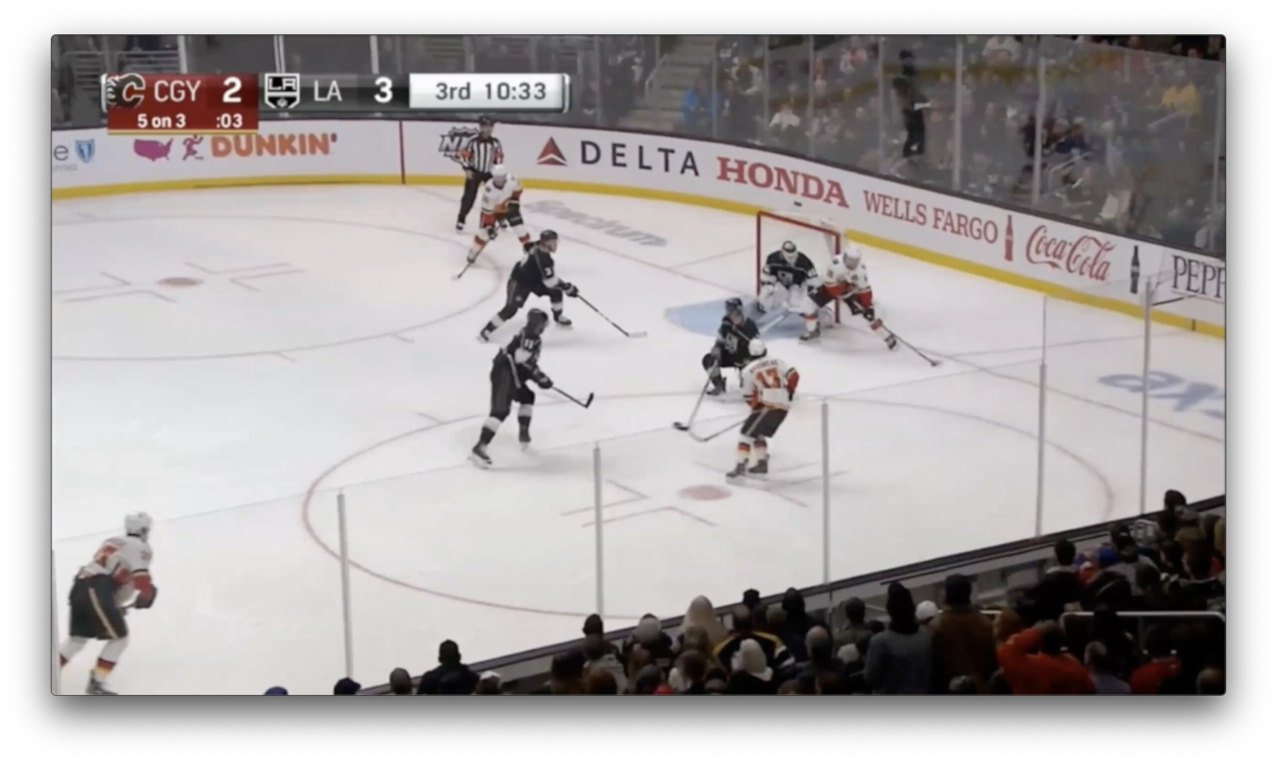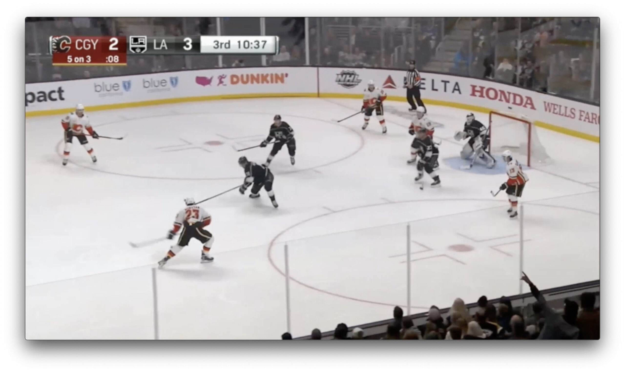 Before we get to the save itself, Petersen walks us through some of the things that change for him as a goalie when facing a 5-on-3. Can you identify any from the freeze frame below? What about how Calgary sets up might lead you to play it where Petersen is in the crease?