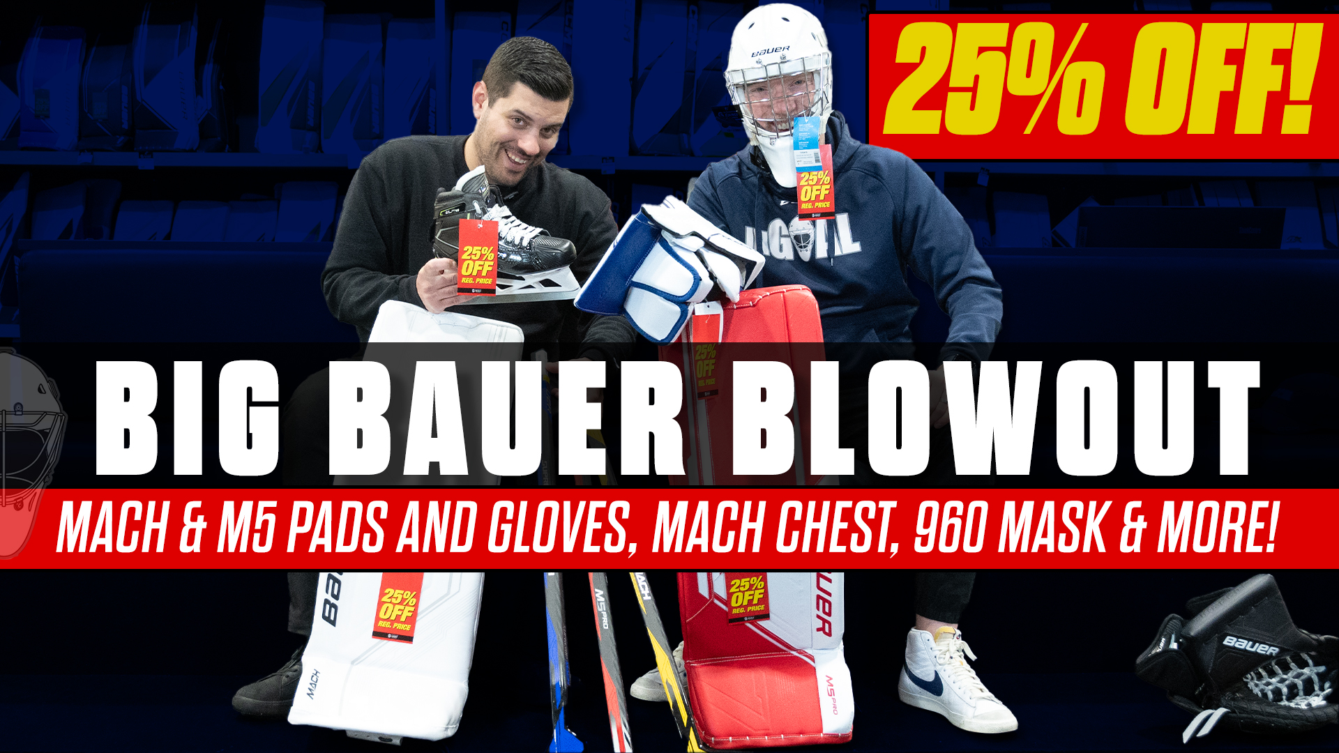 Cam Talbot and another person hold Bauer goalie pads and gloves promoting a 25% off Big Bauer Blowout sale by David Hutchison | Apr 6, 2024 Submit a Comment Cancel replyYou must be logged in to post a comment.