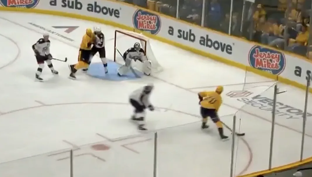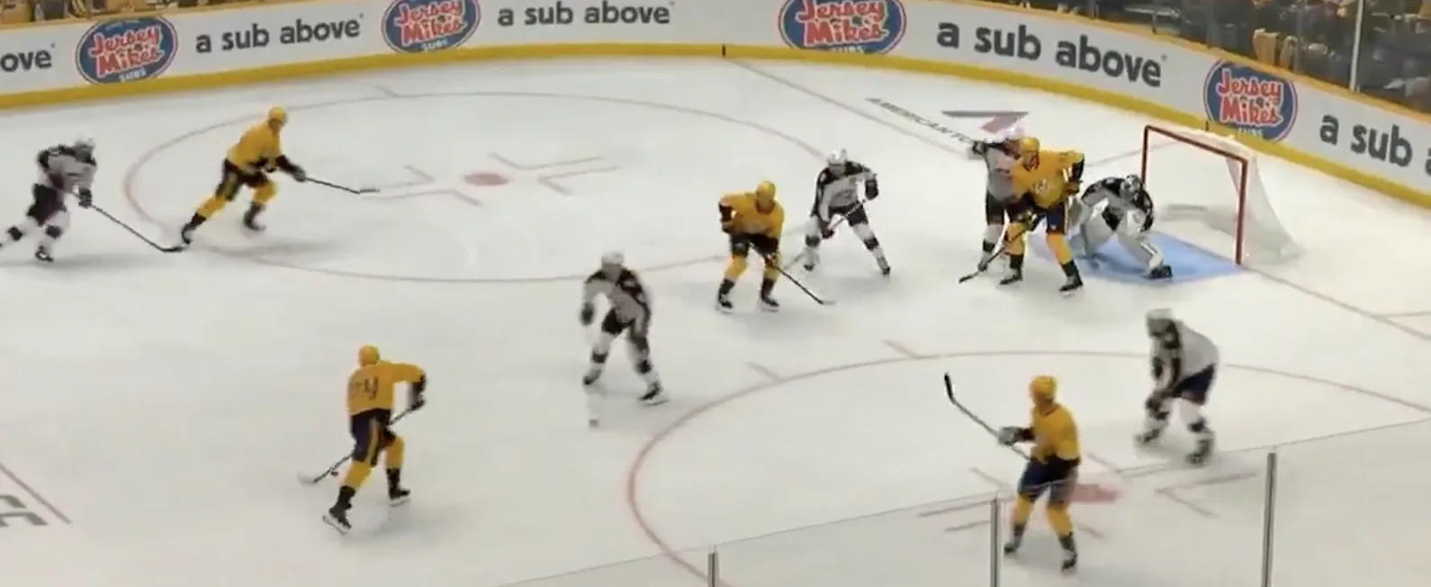 This in-zone sequence against the Nashville Predators from earlier this season has a bit of everything, but it all starts with a shot off a cross-ice dump into a sharp angle:
