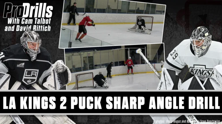 Los Angeles Kings prospect Erik Portillo and Goalie Coach Adam Brown with drill for lateral recoveries and a tip[ about…
