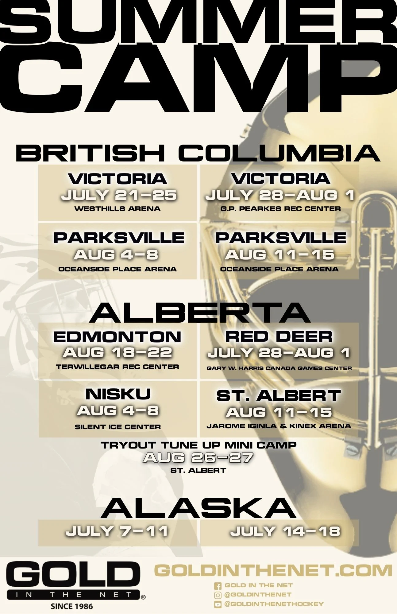 Gold in the Net is Western Canada’s premier goalie development school, offering elite summer camps and in-season clinics across British Columbia, Alberta, and Alaska. For over 35 years, we’ve helped goalies of all ages and skill levels—from beginners to pro-level—reach their full potential through expert coaching and innovative training. Train with our team, featuring former pro goalie Tanner Jaillet, NCAA National Champion and Mike Richter Award winner. Exclusive to Alberta: Book a Coach for personalized 1-on-1 training with Tanner and other GITN GITN-certified coaches. Interested in franchising? Join our growing network and be part of a legacy that’s shaped goalies at every level. Summer camps fill fast—secure your spot or inquire today at [email protected] or visit GoldInTheNet.com!