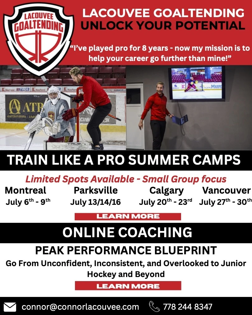Camp Registration & Mentorship Applications Now Open! Contact Connor LaCouvee at +1 (778) 244-8347 🌎 Visit lacouveegoaltending.com for more details