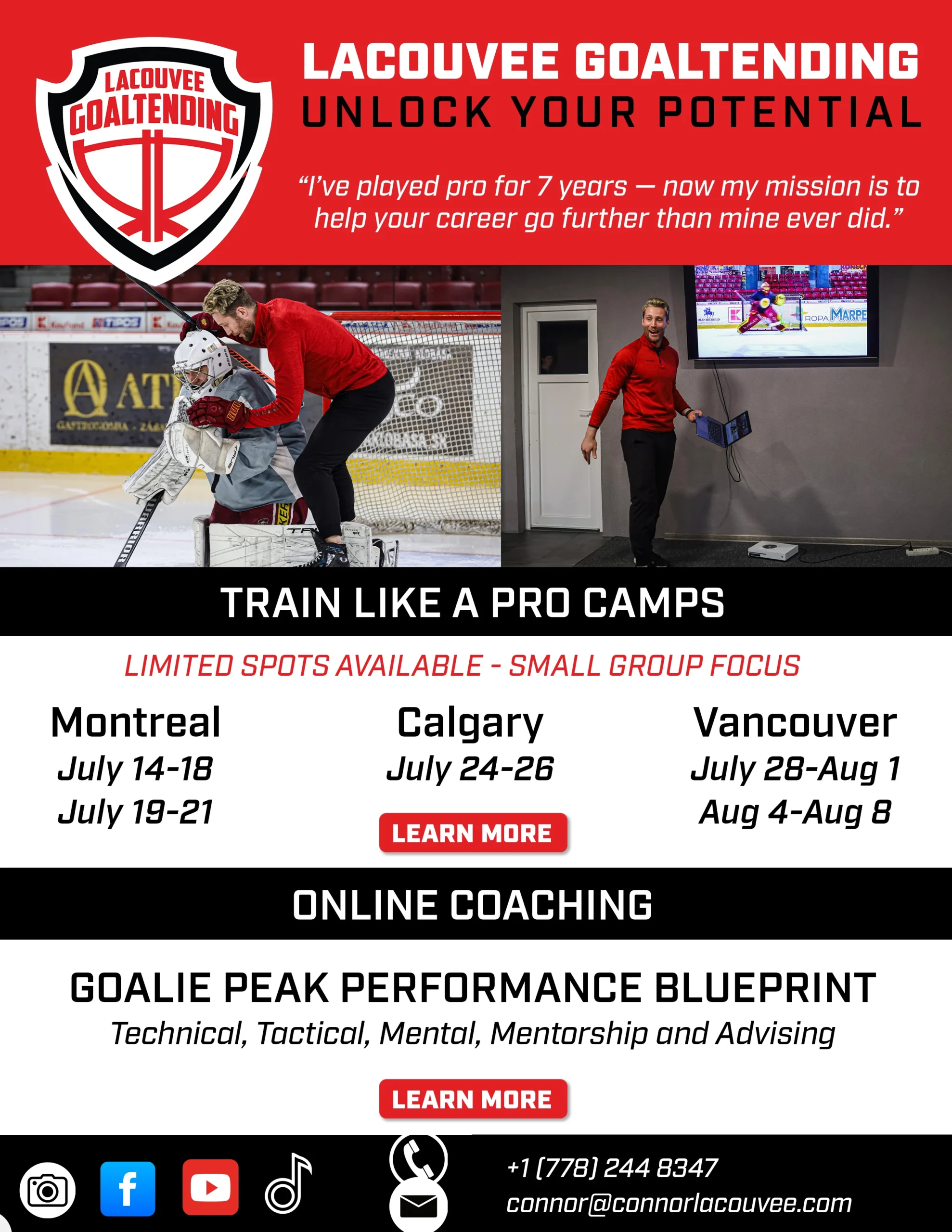 For goalies looking for long-term development and career guidance, our Goalie Peak Performance Blueprint offers an unparalleled opportunity to work directly with Connor LaCouvee and his team. This program is designed for serious goaltenders who want to take their game to the next level and get noticed by junior and college programs.